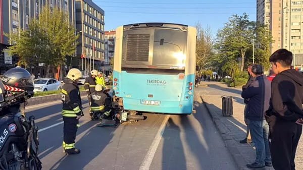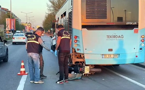 Bu sırada M.S.K. idaresindeki 59 AIB 859 plakalı motosiklet, otobüse arkadan çarptı. Çarpmanın şiddetiyle devrilip, otobüsün altına giren motosikletin sürücü M.S.K. ile arkasında bulunan E.B., yaralandı.