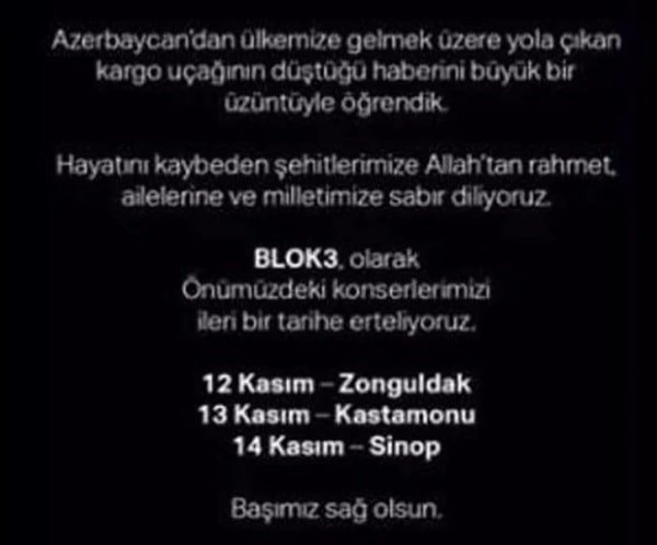 Blok3 önümüzdeki 3 gün boyunca gerçekleşmesi beklenen tüm konserlerini iptal ettiğini duyurdu.